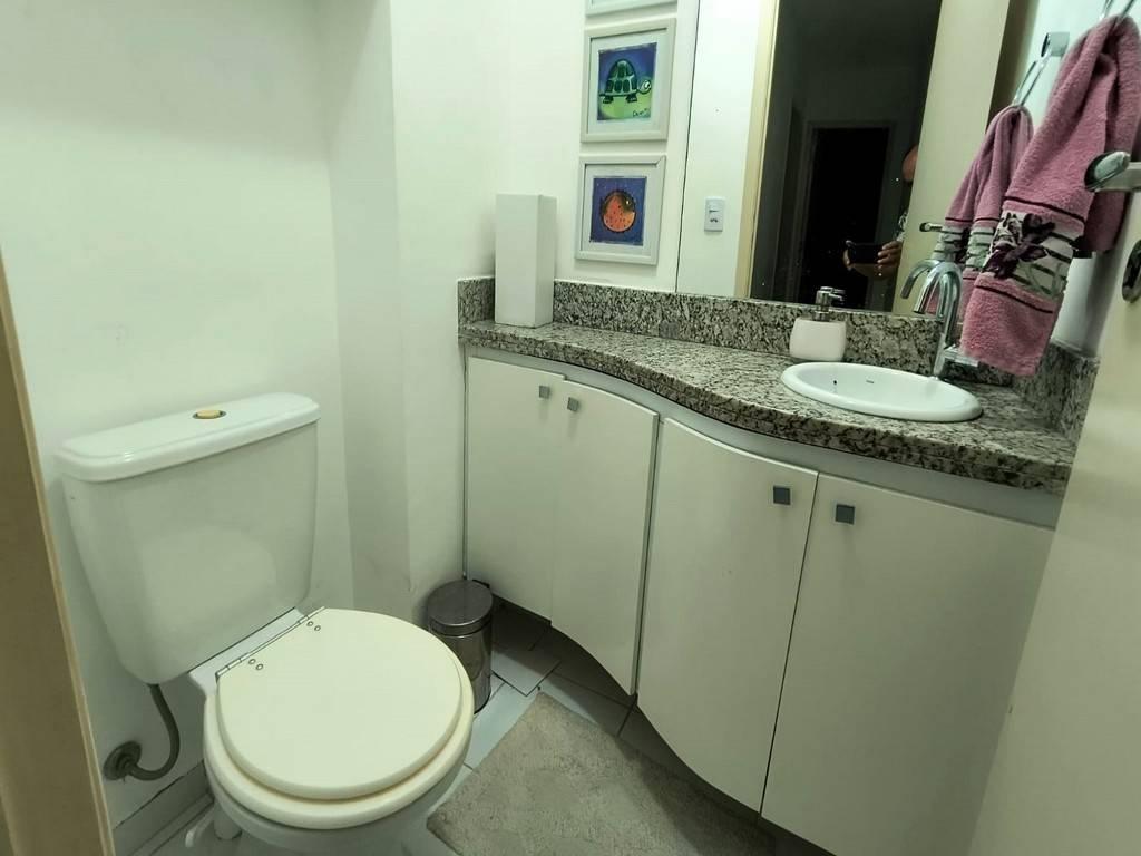 O apartamento tem 91m² de construção, com integração entre a varanda gourmet, cozinha e sala de estar, três dormitórios sendo uma suíte normal e duas canadenses, área de serviço, lavabo, 3 vagas de garagem. Inteiramente mobiliado e climatizado.