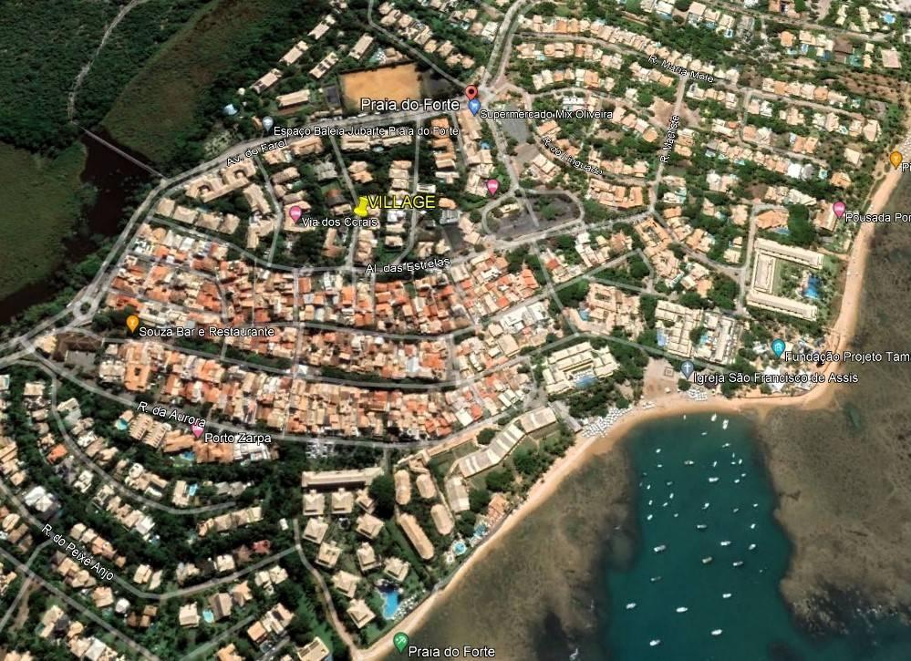 Localizado a 150 metros da Av. Antônio Carlos Magalhães (principal da Vila), 750 metros da praia e 800 metros do Projeto Tamar.